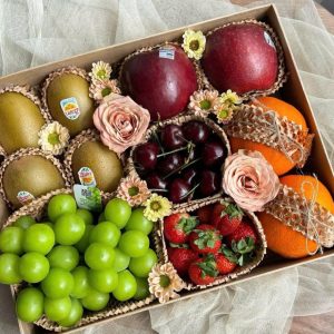 Ở phân khúc này, giỏ quà được đầu tư hơn cả về hình thức lẫn nội dung. Ngoài trái cây nhập khẩu cao cấp như táo Nhật, kiwi vàng, cherry, nho đỏ Mỹ…, giỏ sẽ được thiết kế kèm hoa tươi trang trí bắt mắt:
