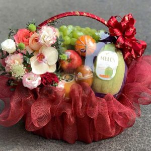 Giỏ sẽ được bày trí gọn gàng trong giỏ mây, giỏ tre hoặc hộp carton cứng, kèm theo thiệp chúc đơn giản. Rất phù hợp để tặng bạn bè, đồng nghiệp, hoặc thăm người thân, người lớn tuổi.