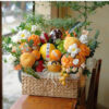 BLUSHING GARDEN FRUIT BASKET mang sắc hồng pastel dịu dàng từ hoa mẫu đơn, hoa hồng và các loài hoa phối, kết hợp cùng trái cây nhập khẩu nhiều màu sắc như nho, táo, cam, lê Hàn. Tổng thể toát lên vẻ ngọt ngào, thanh lịch và tràn đầy sự chăm sóc.