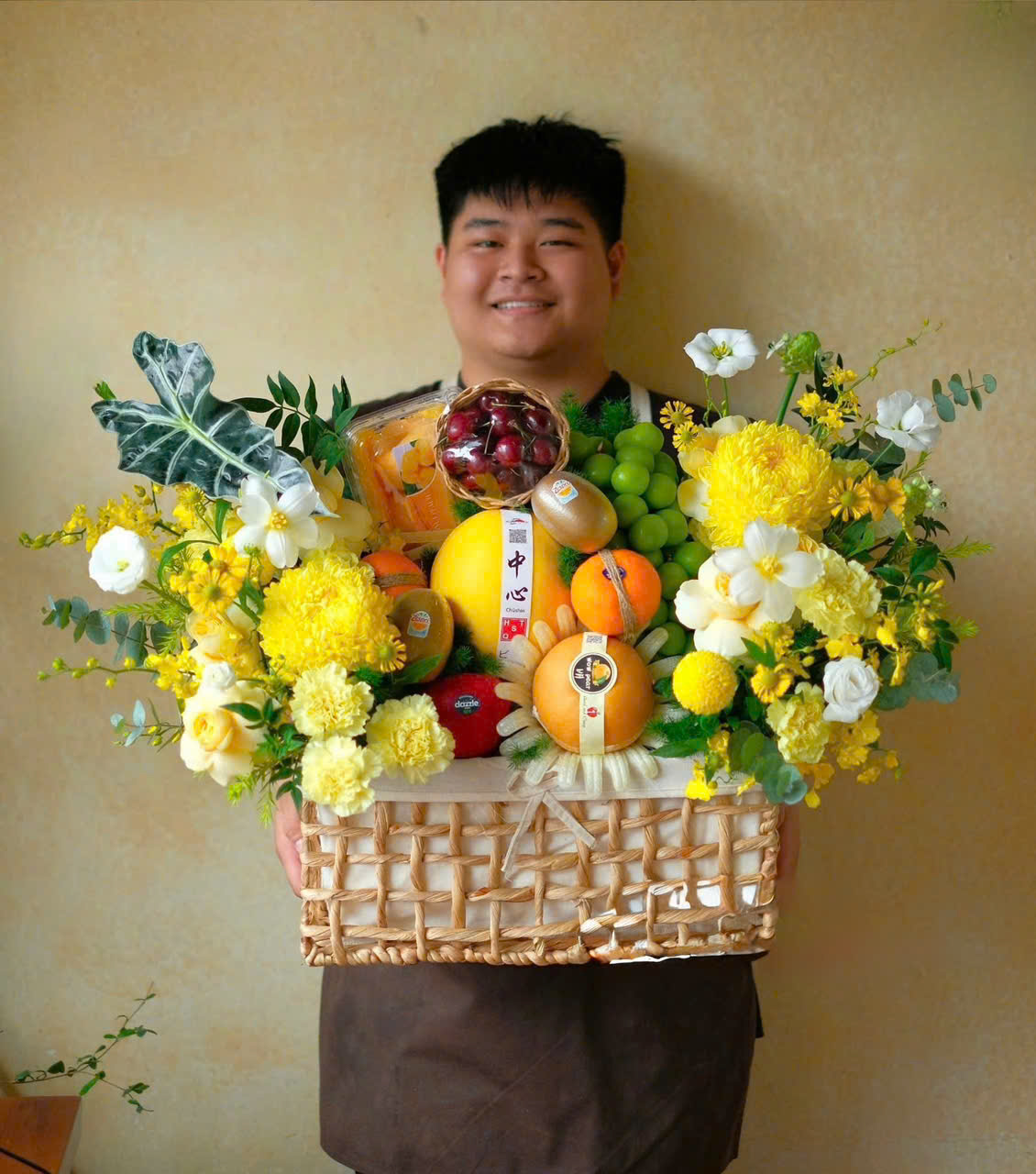SUNLIT PROSPERITY FRUIT HAMPER rực rỡ như ánh nắng đầu ngày với tông vàng – trắng – xanh chủ đạo, mang đến cảm giác ấm áp, tươi mới và tràn đầy năng lượng. Bố cục giỏ được thiết kế đầy đặn với nhiều tầng lớp hoa và trái, tạo ấn tượng sang trọng và nổi bật ngay từ cái nhìn đầu tiên.