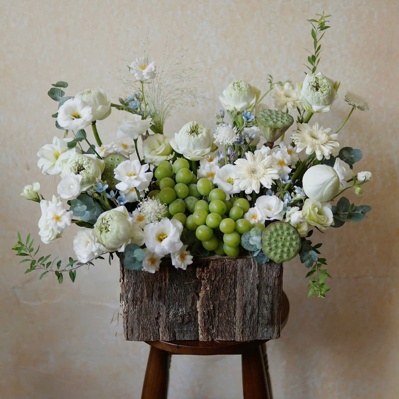 ZEN BLOOM FRUIT BASKET là biểu tượng của sự thanh tịnh và cân bằng, mang đến cảm giác an yên giữa nhịp sống hiện đại. Với tông màu xanh – trắng nhẹ nhàng, giỏ quà là sự kết hợp tinh tế giữa hoa sen, hoa hồng trắng, cúc trắng và nho xanh tươi mát, gợi lên vẻ đẹp của thiên nhiên thuần khiết.