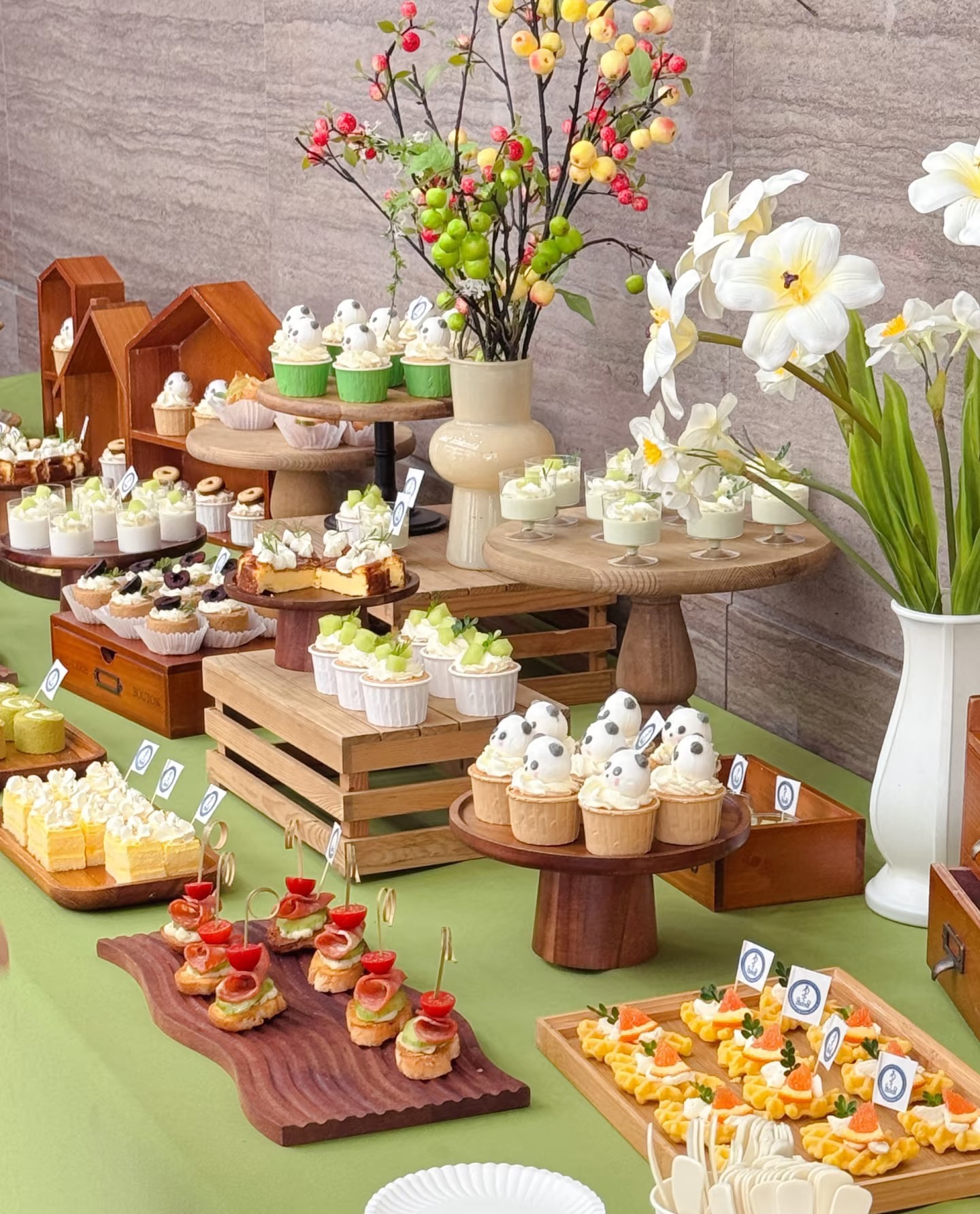 Một buổi Teabreak lý tưởng không thể thiếu thực đơn phong phú và hài hòa dinh dưỡng. Các món finger food như bánh ngọt, bánh mặn mini, trái cây tươi, nước ép detox, trà thảo mộc sẽ giúp khách mời nạp lại năng lượng mà không bị nặng bụng.