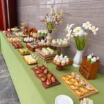 Không gian là yếu tố quan trọng tạo nên trải nghiệm Teabreak trọn vẹn. Việc sắp xếp bàn tiệc hợp lý, lối đi thông thoáng, có khu vực đứng hoặc ngồi tùy chọn sẽ giúp khách mời thoải mái di chuyển, trò chuyện và dùng món.